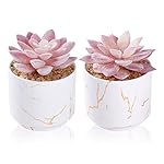 UNIQUE DESIGN: Fake succulents with fake flowers pots are made of 100% white ceramic with gilt craftsmanship. Succulent Plants Artificial unique modern retro shape plus Purple succulent and simple decoration can make your office space or furniture decoration bright and positive for a happy start to your day