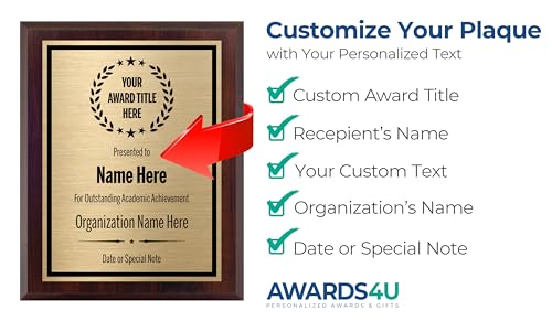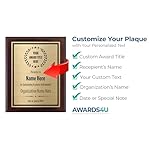 Award Plaques Customizable: These award plaques are fully customizable. You can personalize them with the title of your award, custom engraving, the date, and the name of the recipient.