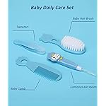 【Enhance Baby Sweet Adorability and Safety】1 Nasal aspirator with small, flexible tip for baby’s comfort. 2 Comfortable silicone finger toothbrush, clean baby’s teeth and tongue. 3 The illuminated LED ear spoon can easily clean and watch the baby’s little ears. 4 With the scale on the medicinal feeding spoon and dropper, more accurately and easy to feed baby. 5 Scissors with round blades will not poke baby