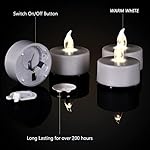 2.【Create ATMOSPHERE】24 warm white tea lamps, the flame is warm and realistic, creating a warm atmosphere. These 24 LED Electric Tea Light Candles are stunning and creative, just flip the switch and your room will be filled with a sweet and romantic vibe!