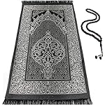 BAYKUL Muslim Prayer Rug, Islamic Turkish Prayer Rugs, Great Ramadan Gifts, Prayer Mat for Women and Men,Islam Carpet,Portable Muslims Mats,Praying Rugs Islam with Beads-Gift Prayer Beads 99 (Grey)