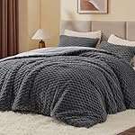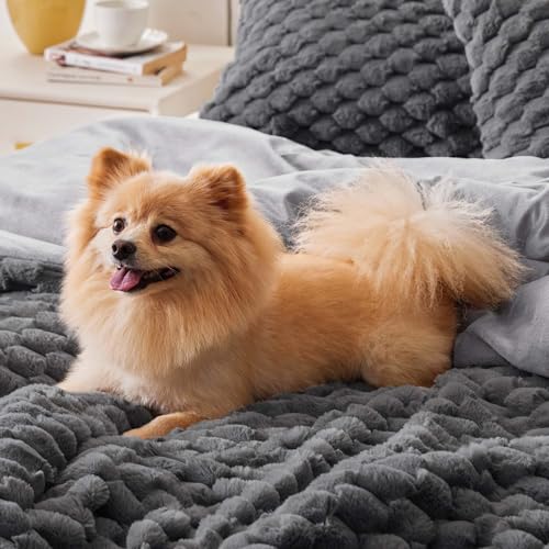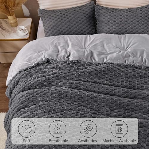 BEDELITE Fluffy Queen Comforter Set – Grey Fleece Soft Comforter for Queen Size Bed, Luxury Warm Bedding Set for Winter, Fuzzy Bed Set 3 Pieces (1 Comforter, 2 Pillowcases)