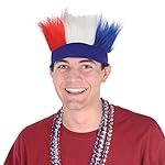 Beistle 60277-RWB Hairy Headband. The package contains 1 hairy headband in red, white and blue colors. It is one size fits most. The headband is made of fabric and has red, white and blue “furry hair” attached. Wonderful headband to wear for a Patriotic party!