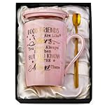 Best Friend Birthday Gifts for Women, Friendship Gifts for Women friends, Good Friends are Like Stars Coffee Mug, Christamas Bday Gift for BFF, Bestie, 14Oz Pink Mug Printed with Gold, Nice Gift Boxed