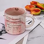 💕 GIVE THE CUTEST MUG TO YOUR LONG DISTANCE BFF: If your friend loves coffee as much as she loves you, she will be thrilled with this personalized cup, which reads “Best Friends Are Connected To Heart”, printed with reflective gold letters on a sleek pink marble background.