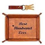 Best Husband Ever Gifts for Husband from Wife PU Leather Valet Tray & Keychain, Unique Gifts for Him Husband Who Has Everything at Birthday Valentines Day Christmas Anniversary