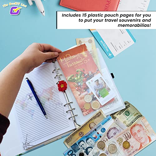 ORGANIZE TRIP SOUVENIRS INSIDE YOUR JOURNAL – Capture your thoughts as well as store keepsakes such as plane, bus, train, cruise, concert, football, soccer, baseball, basketball, or other sports, movie tickets, museum receipts, postcards, magnets, travel maps, and much more, and reflect on your travel memories in the future. Studies have shown journal writing is linked to better recall of memory, lowering stress & anxiety, and improving mood. You can write up to 25 destinations or itineraries.