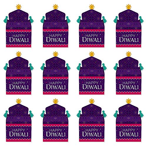 Big Dot of Happiness Happy Diwali – Treat Box Party Favors – Festival of Lights Party Goodie Gable Boxes – Set of 12