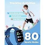 All-Day Activity Tracking: BIGGERFIVE BRAVE 2 Smart Watch for Kids Teens Automatically counts steps, distance, calories burned, and active minutes. Supports 80 sports modes like walking, running, cycling, swimming(IP68 Waterproof), basketball, and more.