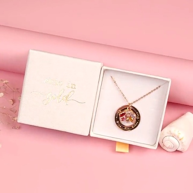 [BIRTHSTONE OPTIONS]: January – Garnet, February – Amethyst, March – Aquamarine, April – Diamond, May – Emerald, June – Light Amethyst, July – Ruby, August – Peridot, September – Sapphire, October – Pink Tourmaline, November – Topaz, December – Blue Topaz