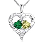 BlingGem Heart Necklaces for Women 925 Sterling Silver Birthstone Necklace for Women With 2 Birthstones Womens Jewelry Customized Pendant Necklace Gifts For Women Wife Mom