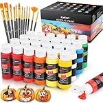 Acrylic Paint Set With 12 Brushes: Premium paints glide on smoothly, dry quickly and stay as beautiful as the day they were painted. Whether you’re new to acrylic painting or a seasoned artist, the paint kit will set fire to your imagination. Great acrylic paint for canvas painting, halloween decorations, pumpkin painting. The craft paint set is great to produce true, consistent shades on painting art, ideal for professional artists, young aspiring artists, painting lovers, students and kids.