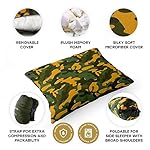 Camping Pillow: Made with shredded memory foam, this portable pillow is compact, comfortable and lightweight. Our small pillow for travel comes with a camo print silky soft microfiber removable machine-washable cover, and a water-resistant pouch to keep your outdoor pillow clean and dry.
