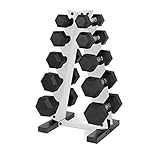 SPACE-SAVING DESIGN – The A-frame design of this rack maximizes floor space by storing dumbbells in an “A” shape, or vertical fashion. Easily access and store dumbbells. Rubber inserts prevent dumbbells and rack from scratches
