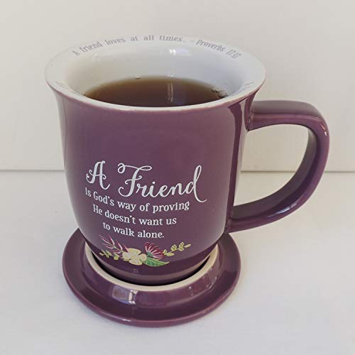 A great way to share a cozy morning coffee with a close friend! Complete with meaningful messages, this is the perfect gift to give a friend to show how much you care. Our stylish and inspiring coaster mug features an adorable floral design and the heartwarming message “A friend is God’s way of proving He doesn’t want us to walk alone” on either side. “A friend loves at all times. Proverbs 17:17” is written on the matching coaster and around the inside rim. Our adorable coaster mugs are designed by our talented in-house artists and are made of quality microwave and dishwasher safe ceramic with a glossy finish. Each mug is 4 ½ “ high, with 4” diameter coaster, and holds 14 oz. Abbey & CA Gift is a family-owned and operated designer, manufacturer, and wholesale distributor of distinctive inspirational giftware. Through our vast product lines of heart-warming, beautifully crafted gifts, we help our customers celebrate and connect with their loved ones. Whether you are looking for anniversary, baby or bereavement items or you are looking for impulse items such as key rings, companion coins, pocket tokens, visor clips, face masks, or jewelry, we have a gift for everyone on your list.