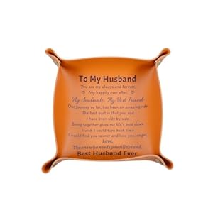 Husband Anniversary Gifts from Wife: The best leather tray for husband is engraved with”To my husband, you are my always and forever my happily ever after my soulmate my best friend our journey so far, has been an amazing ride the best part is that you and I have been side by side” which is the best husband birthday gift ideas, husband gifts from wife, husband anniversary gifts from wife, leather anniversary gifts for him, 3 year anniversary gifts for men, men anniversary gifts from wife.