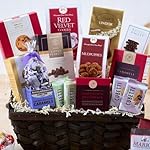 New 2024 gourmet chocolate basket! Make a lasting impression at any occasion with this premium chocolate gift basket. Inside one of our signature chevron weave patterned baskets, your recipient will discover a tempting collection of gourmet foods that includes sophisticated treats and silky chocolates. Exclusively from GourmetGiftBaskets.com!