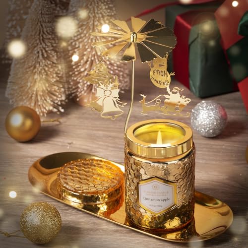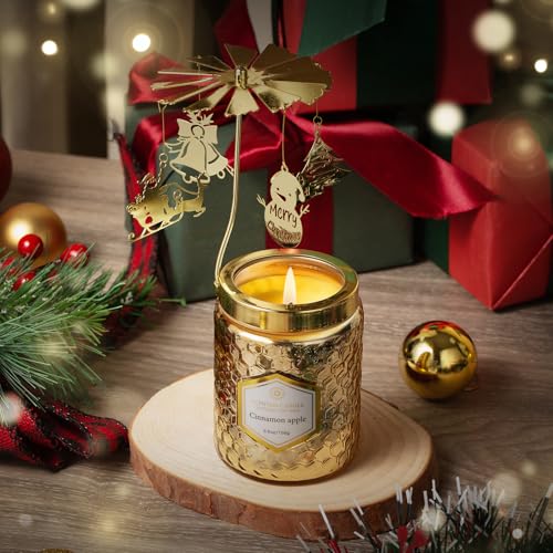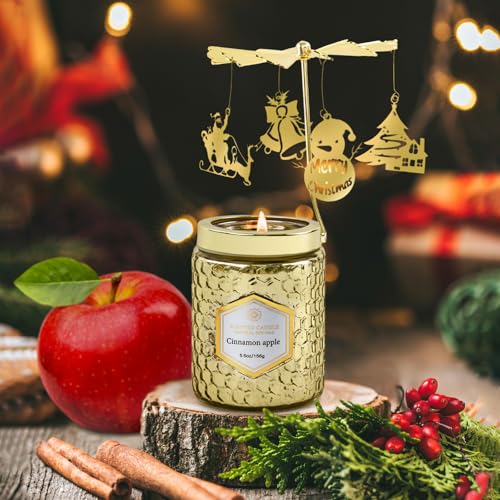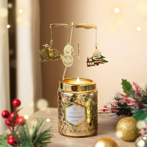 Christmas Rotatable Scented Candles Gift- Cinnamon Apple Candles- Merry Christmas Winter Holiday Gifts for Her, Mom, Sister, Wife(5 oz)