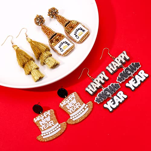 Christmas Earrings Beaded Holiday Earrings for Women Christmas Tree Snowflake Tassel Dangle Earrings New Years Mardi Gras Earrings Festive Party Jewelry Gifts