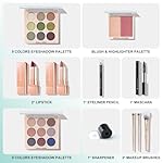 Perfect Beginner Makeup Kit: Our makeup kit included 2 x 9 colors eyeshadow palette, 1 x blush & highlighter palette, 2 x lipstick, 1 x sharpener, 1 x eyeliner pencil, 1 x mascara, 3 x makeup brushes, fulfilling your makeup needs to create a flawless look. Ideal for beginners, this kit is a perfect companion for makeup beginner, teenagers, and working professionals.