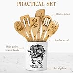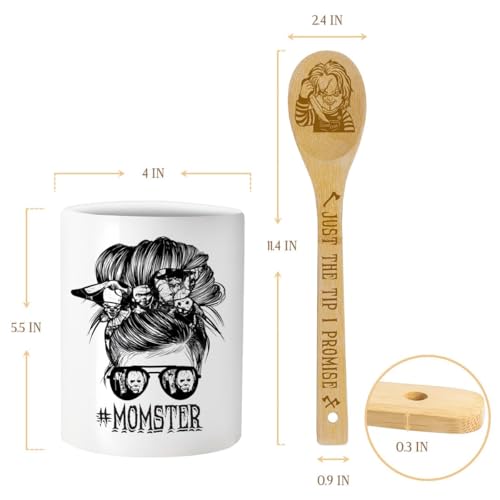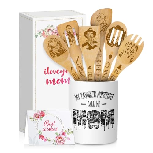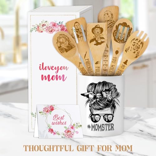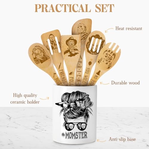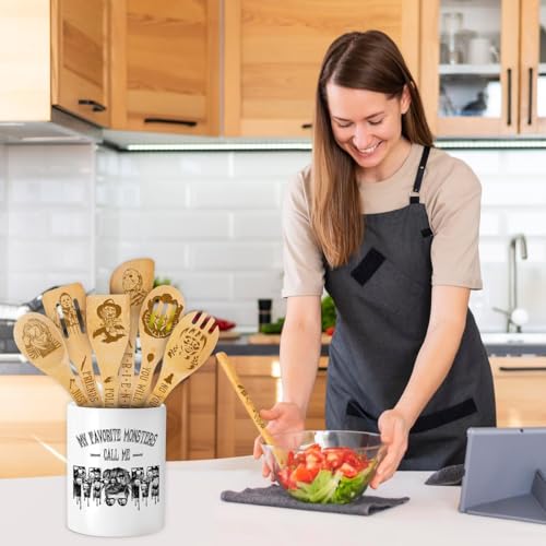 Cooking Utensils Set, My Favorite Monsters Call Me Mom, Halloween Utensil Gift, Utensil Holder & 6 Wooden Spoons Cooking Gifts For Mom, Kitchen Gifts For Mom, Horror Gifts For Women