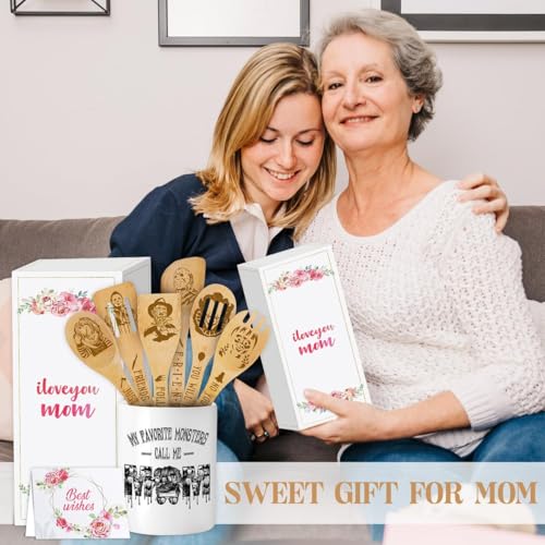 SWEET GIFT FOR MOM: Show your appreciation and make your mom feel cherished with this ideal mom gifts. This kitchen gifts come with a ceramic utensil holder, a set of bamboo kitchen utensils, a gift card and gracefully presented in a box.