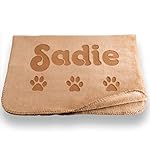 Personalized dog blanket with choice of hearts, bones or paws design. Personalize with your dog’s name. Perfect for couch, car, floor or any dog nap spot that you want to protect while adding silky smooth comfort.