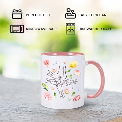 【PERSONALIZED MOTHERS DAY GIFTS】:Click on “Customize Now” and choose the color you want then choose hand’s number,creating a unique mother’s day gift for your mom nana,our custom coffee mug for women features sentimental design that reflects the bond between a mother and her children,high-quality ceramic coffee mugs,custom gifts with name for women,family members, nana gifts for grandma grandmother,mothers day gifts for wife from husband,cute mother’s day gift for mom mommy from son or daughter.