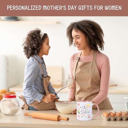 【CUSTOM COFFEE MUG FOR WOMEN】:Treat yourself or give as a gift to someone special with our personalized mug,perfect present for your loved ones use and enjoy for years to come.Our customizable floral mug allows you to add you and your mom’s names, perfect keepsake for your nana mom mommy mother mother-in-law. Perfect house decorations gift for mom, a cute gift for mom from children kids, funny women’s gift for her, and a personalized gift for mothers and grandmothers to cherish with their kids.