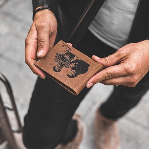 Custom Leather Wallet for Men â Personalized Photo Design with Engraved Picture Insert â Customized Wallet Gift for Boyfriend, Husband, or Dad â Birthday, Fatherâs Day, Anniversary, or Christmas Gift