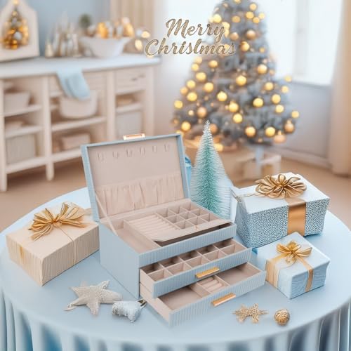 Dajasan Jewelry Organizer Box, Jewelry Storage Organizer with 2 Drawers, 3-Tier Large Jewelry Gift Box for Women, Girls, Friends, Wife or Mother, Gift Idea (Smoky Blue)