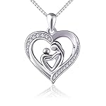 DAOCHONG Mother’s Day Gift Mother Holding Child Sterling Silver Mothers Love Heart CZ Pendant Necklace for Women Mother Grandmother
