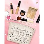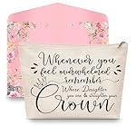 LISEVO Daughter Choice, Inspirational Makeup Bag for Daughter from Mom Dad, Best Bonus Step Daughters Graduation Birthday Present from Step Mom, Small Linen Straighten Your Crown Cosmetic Bags