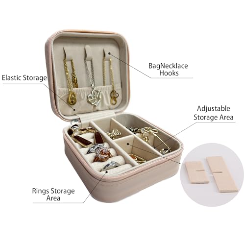 PERFECT TRAVEL GIFT FOR WOMEN: If you have a jewelry-loving lady in your life, this pink jewelry box is the perfect gift for her. This is the perfect gift for mom, daughter, granddaughter, niece, cousins, friend, sister, bridesmaid, bride, wife, girlfriend, or teacher on Valentine’s Day, Mother’s Day, Christmas, wedding, birthday, and anniversary. This small jewelry box is made from high quality PU leather material, which is waterproof, great for travel jewelry storage.The interior of the jewelry case is made from high quality velvet, soft enough to protect your jewelry. This travel jewelry case organize measures 3.9*3.9*2inch/10*10*5cm. There are 6 ring placement, 4 stud earring compartments, 3 necklace hooks, and 4 rectangular divisions which can be removed. This small jewelry box is a best travel jewelry case organizer. We have the best after sales service: Any question about jewelry box, please contact us, we will answer your question within 24 hours and give you a satisfactory answer.