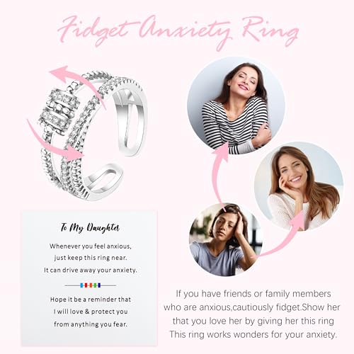 Daughter Gifts from Mom Fidget Ring Women Gifts for Christmas Anxiety Rings for Women Mother Daughter Rings Adjustable Open Multi-layered Spinner Rings Stocking Stuffers