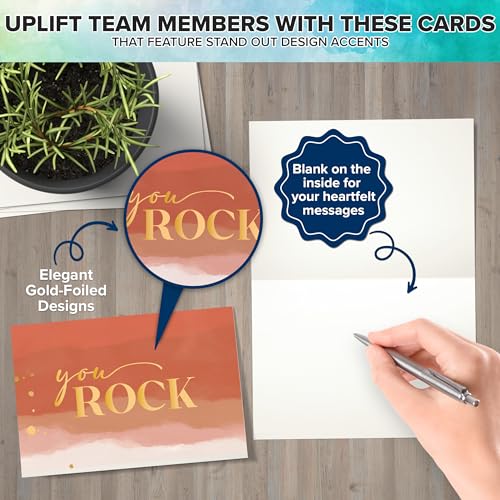 Decorably 50 Pack Gold Foiled 6x4in Employee Appreciation Cards with Envelopes and Stickers, 10 Designs Folded Employee Thank You Cards for Employees, Blank Inside – Promotion, Work Anniversary
