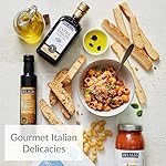 Gift comes with best-loved Italian delicacies including gourmet Shellbow (lumache) Pasta 16 oz bag, Extra Virgin Olive Oil 16.9 oz bottle, Pomodoro Fresco Four Cheese Sauce 25.25 oz jar, Almond Biscotti 7.5 oz box, Balsamic Vinegar of Modena ICP 8.5 oz bottle, Classic Focaccia Toasts 3.5 oz box.