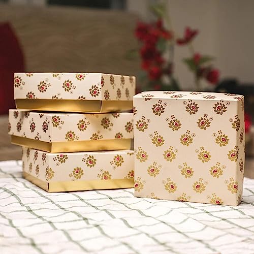 Exquisite Design: The floral gold print, reflects the rich cultural heritage of India, adding a touch of tradition and elegance to your celebrations. The boxes come with secure lids that tightly close, preventing any spills or damage during transportation or storage.
