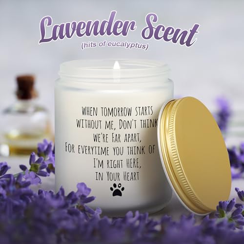 Loss of Pet Sympathy Gift: The unique gifts with touching saying “When tomorrow starts without me, don’t think we’re far apart, for every time you think of me, I’m right here, in you heart”, making it a thoughtful memorial candle present for dog lovers, pets owners, friends, coworkers, boss, families or anyone who just lost dog or cat… A special way to express your care and support for someone grieving the death of their beloved fur baby.