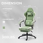 Dowinx Gaming Chair Breathable Fabric Game Chair with Gel Pad and Storage Bag, Comfortable Gamer Chair with Pocket Spring Cushion, Ergonomic Computer Chair with Footrest, Green
