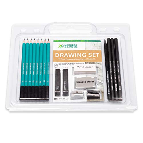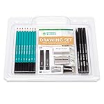 COMPLETE DRAWING KIT: 8 premium graphite pencils (8B,6B,4B,2B,HB,F,H,2H), 100 sheet drawing pad, 1 ultra soft all-graphite woodless specialist pencil, 2 sharpeners for graphite and charcoal pencils, 3 Charcoal Pencils (Soft, Medium, Hard), 1 Vinyl Eraser, 1 Kneaded Eraser, and 2 Charcoal Stick (Soft, Medium).