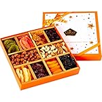 Cerez Pazari Dried Fruit and Nuts Gift Basket, Gourmet Holiday Gift Box Variety Of 10, Healthy Party Snack, Elegant Orange Box, 1.43 lbs