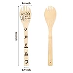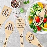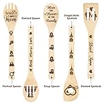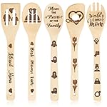 Mothers Day Wooden Spoons Utensils Set: These novelty wooden spoons kit includes 5 different utensils: soup spoon, slotted spoon, slotted spatula, single hole spatula, forked spoon. These spoons are a great addition to a kitchen or home for mom.