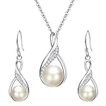 EleQueen 925 Sterling Silver CZ Freshwater Cultured Pearls Bridal Pendant Necklace Earrings Wedding Jewelry Sets, Valentine’s Day/Mother’s Day/Christmas Gift