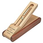 This unique wooden pen box has a swivel at one end, allowing it to open into a pen stand. The two-tone design ensures it will match the look of any desk. The free laser engraving allows you to add a personal touch to a great gift. Inside, we include a rosewood ballpoint pen with brass accents. We do all of our engraving in our own warehouse, so this pen box/stand will ship the day after you order, even with personalization. Two-tone wooden pen box/stand Rosewood ballpoint pen A swivel allows the box to flip over itself and become a pen stand. Uses Cross-style ballpoint pen refills: Black refill: Fine Point = CRO8514; Medium = CRO8513 Blue refill: Fine Point = CRO8512″ Medium = CRO8511 Free laser engraving Packaged in a gift box