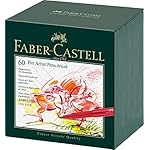 Faber Castell-PITT Artist Pen Set. Made with high quality pigments Faber-Castell PITT Pens have without acid archival India ink. They are odorless permanent lightfast and smudge proof/waterproof when dry. Unlike traditional markers they will not bleed through paper. Use on canvas fabric wood and ceramics. The brush nib can be refreshed by simply taking it out and turning it around. This 6x6x4 inch package contains sixty PITT artist pens in assorted colors. Archival quality. Conforms to ASTM D4236. Imported. The shafts and caps of Faber-Castell markers and fibre-tip pens are made of polypropylene (PP) to protect them from drying out quickly. Their ink will last for years. The product also has a minimal environmental impact after use, because PP burns like candle wax.