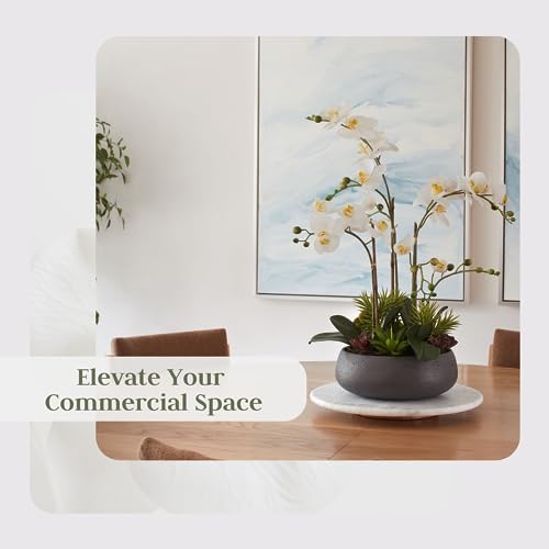 REALISTIC STATEMENT PIECE: This lifelike Orchid Plant with Succulents is carefully assembled to look like the real thing, it’s sculptural blooms will be enjoyed year-round with zero maintenance required. Add an inviting touch of nature to your home.