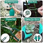 11-PIECE GARDENING SET: This essential all-in-one gardening set includes a large trowel, small trowel, hand rake, cultivator, weeder, pruning shears, 100ft gardening rope, handheld sprayer, digging claw gardening gloves, pruning snips, and an Oxford cloth tote to keep all your tools packed away and organized so you can prune, dig, weed, aerate, and plant to perfection.