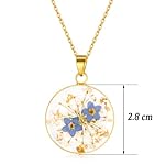 😊Pendant Detail: Handmade item; Pendant height: 2.8 Centimeters; Pendant width: 2.8 Centimeters; Materials: 18K Gold Plated over brass,Forget-me-nots flower,Queen Annes lace, resin,gold flakes.Chain Detail:Stainless Gold Plated 18 inches and is perfect for everyday wear.