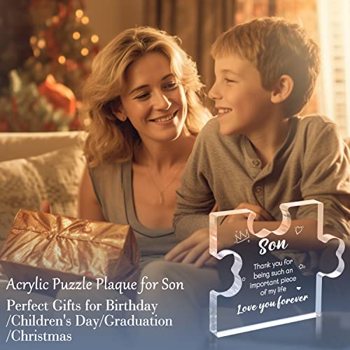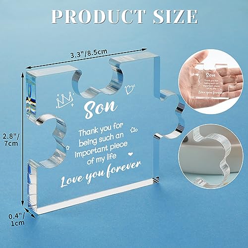 Funnli Gifts for Son from Mom Dad, Christmas Fathers Day Graduation Valentines Day Wedding Birthday Gifts for Son Acrylic Puzzle Plaque, Son Gifts 3.35 x 2.76 Inch Desk Decorations